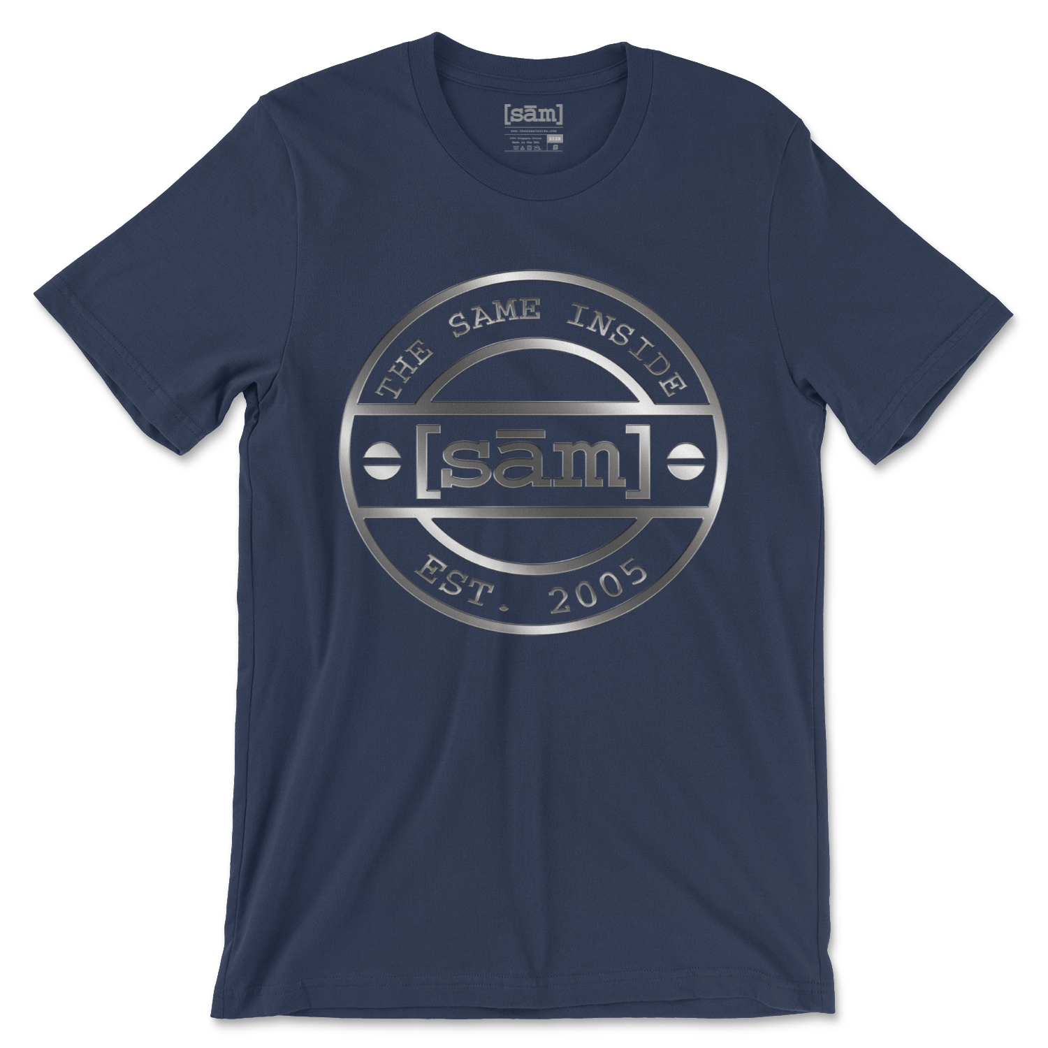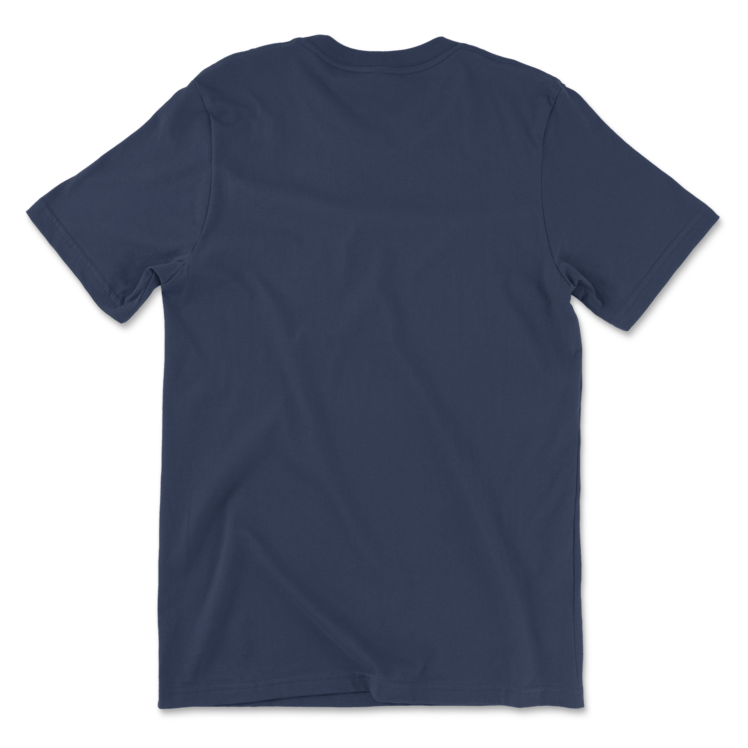 This navy t-shirt is super soft, 100% Airlume pre-shrunk combed and ringspun cotton, 4.2 oz. Unisex sizing, shoulder to shoulder taping with side seams. Made in the USA.