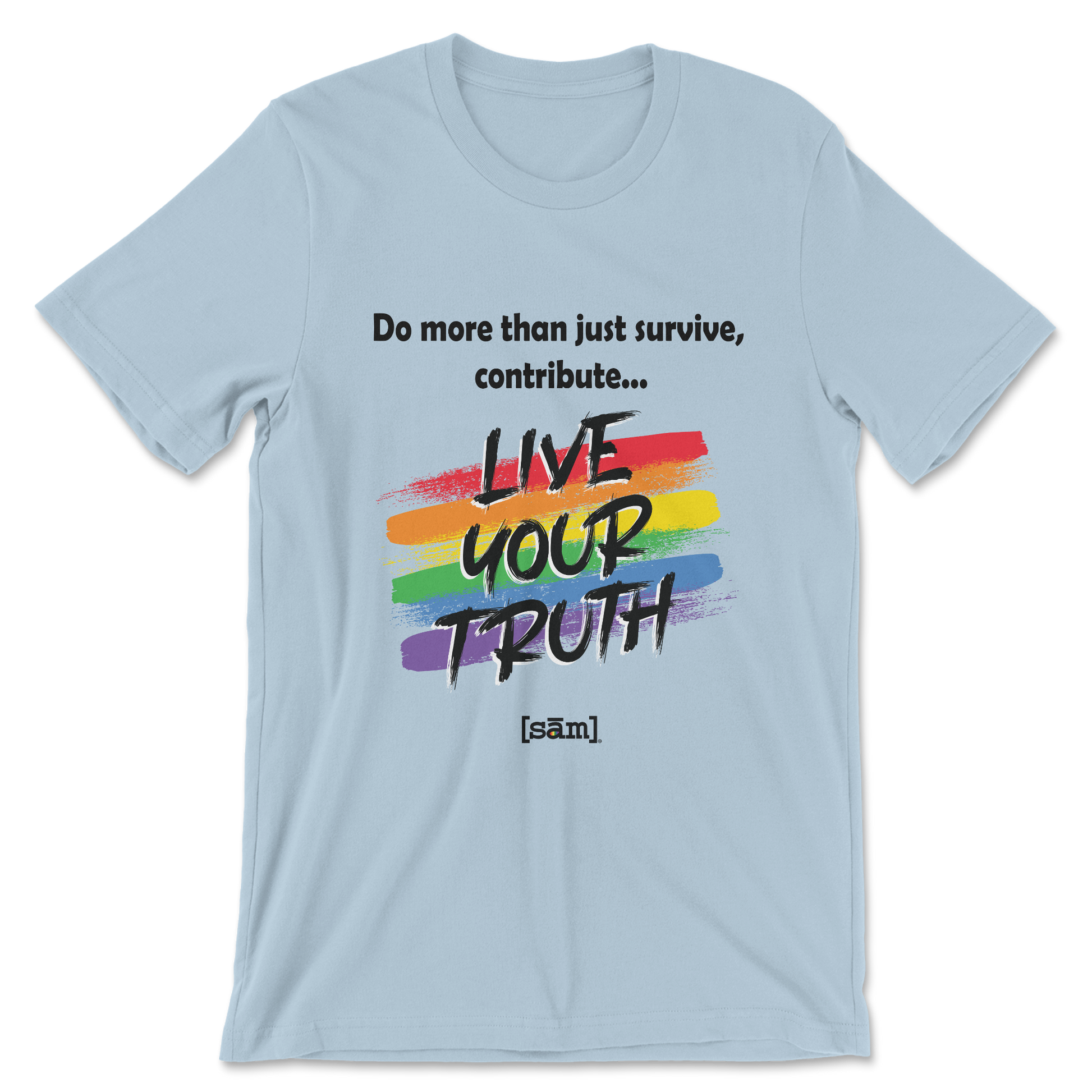 Introducing our latest addition to the "Live Your Truth" collection: the epitome of pride apparel. Made from 100% cotton in a calming light blue hue, this unisex t-shirt is designed to make a statement without saying a word.